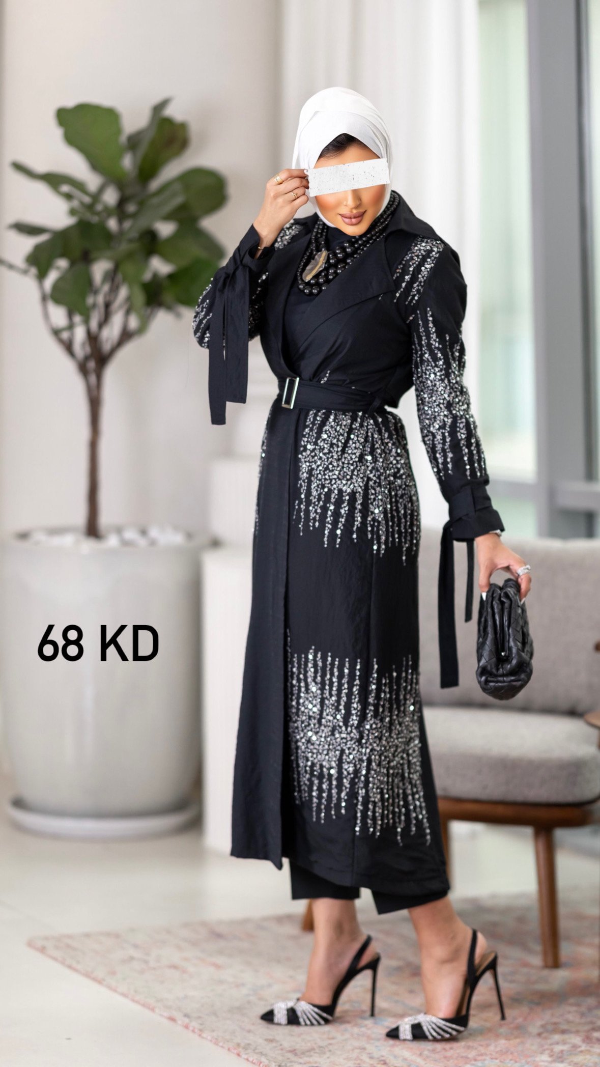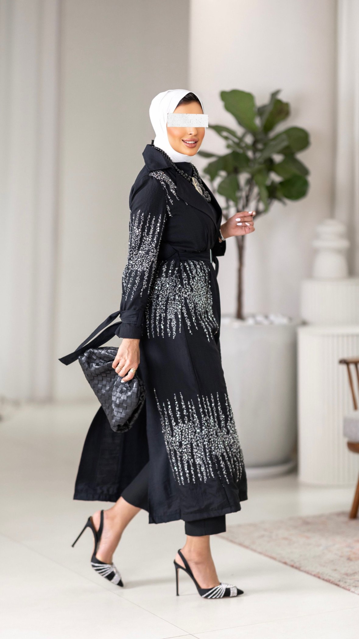 Black beaded trench coat
