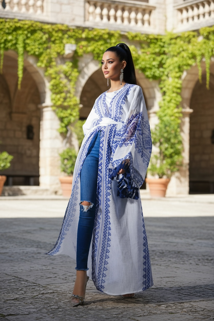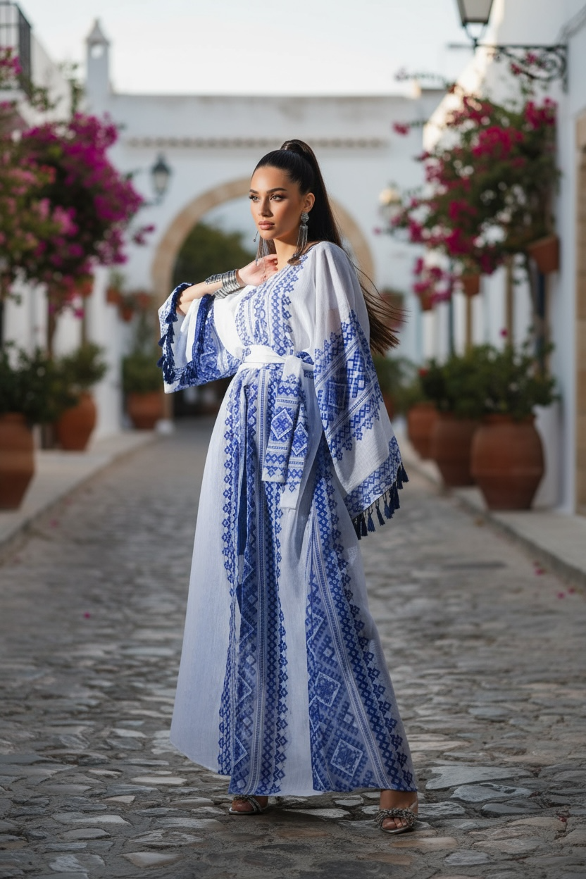 Ocean blue beaded Kaftan