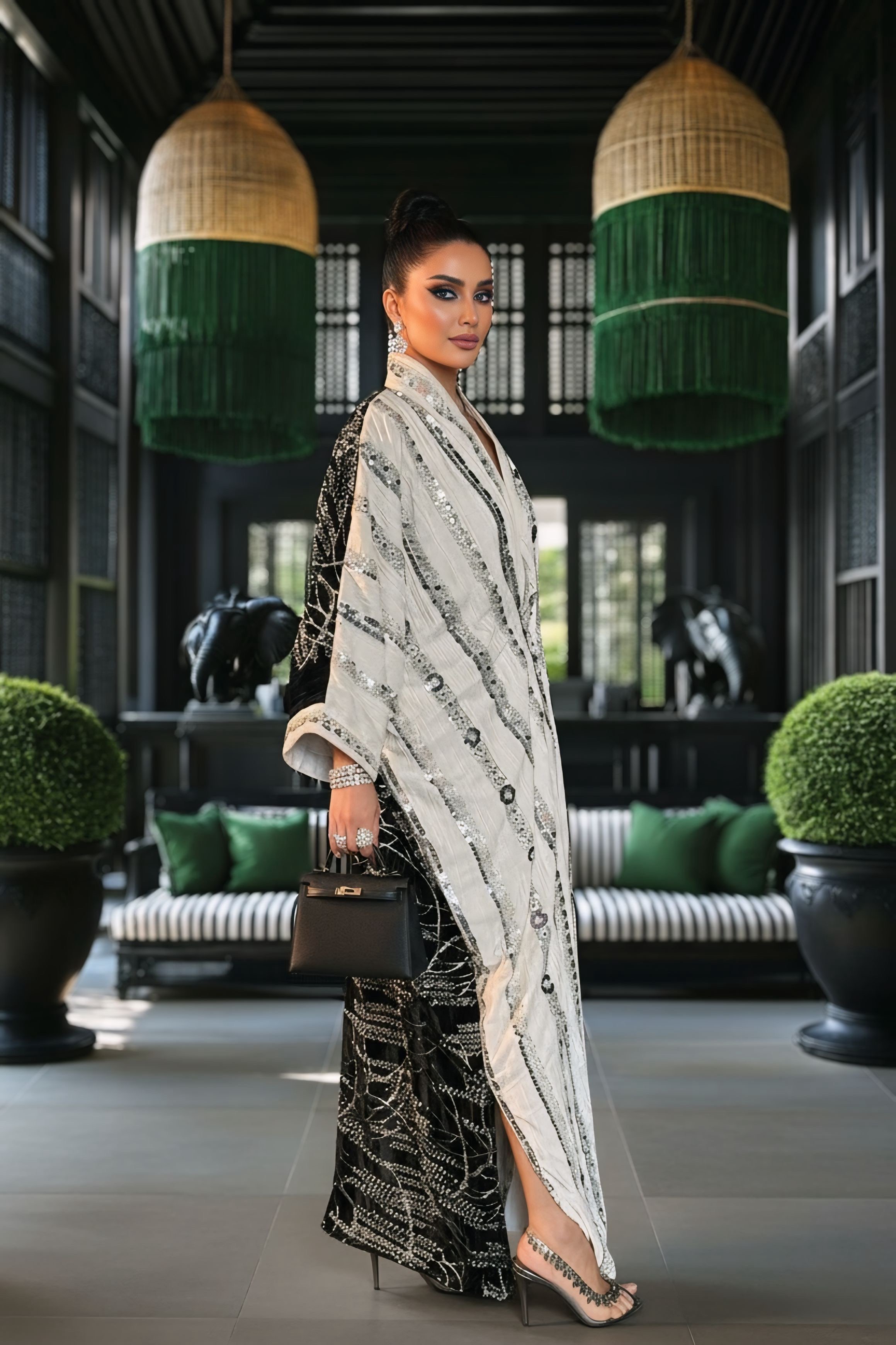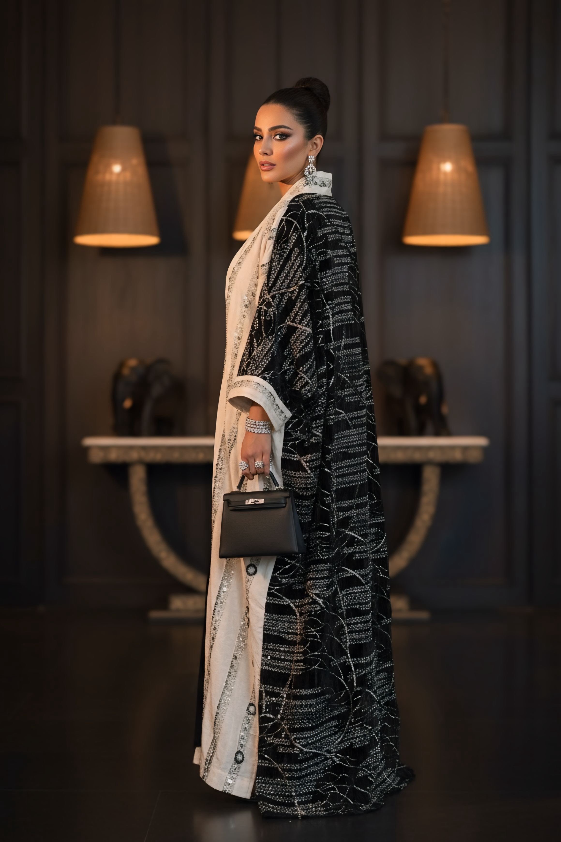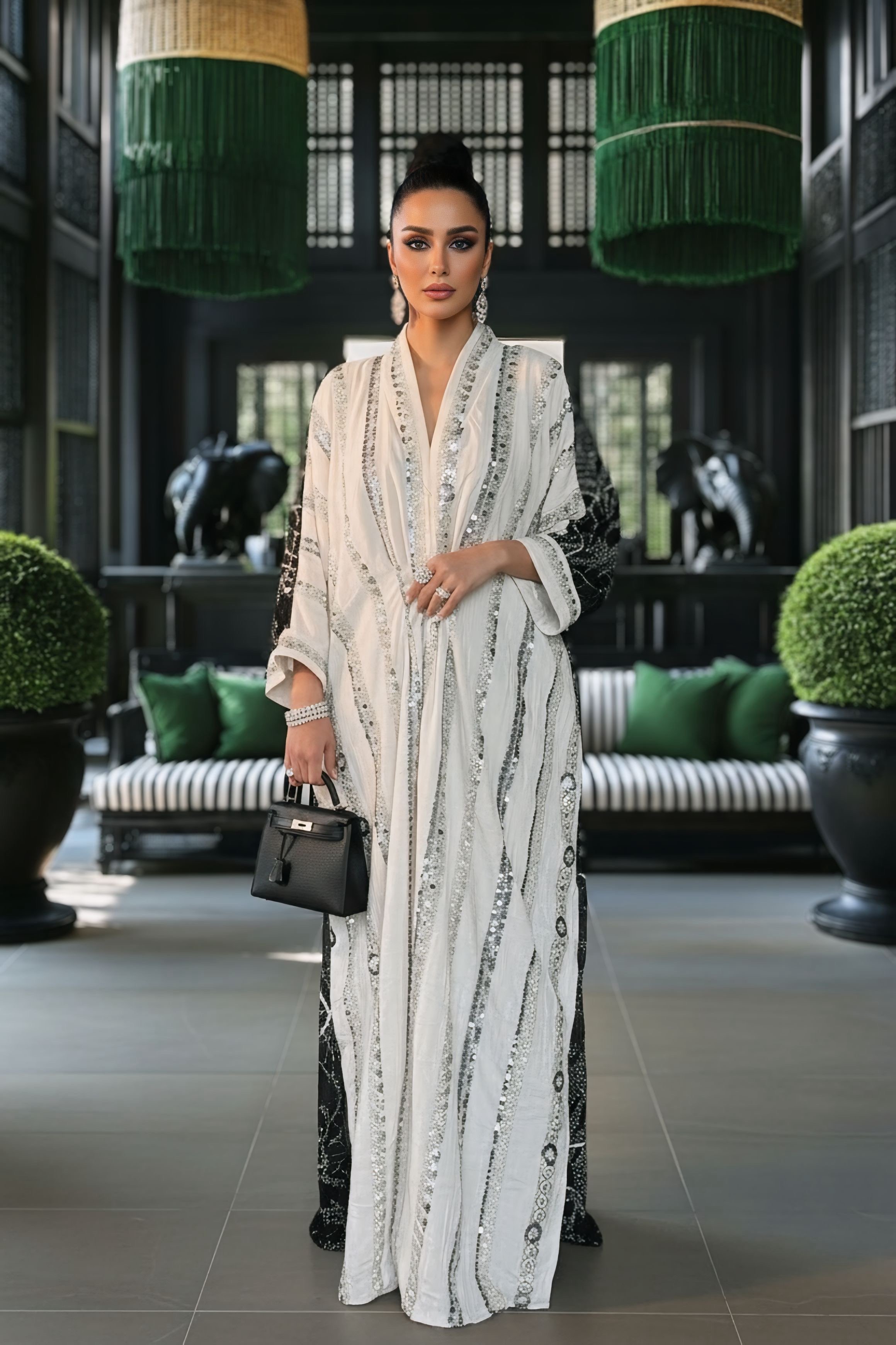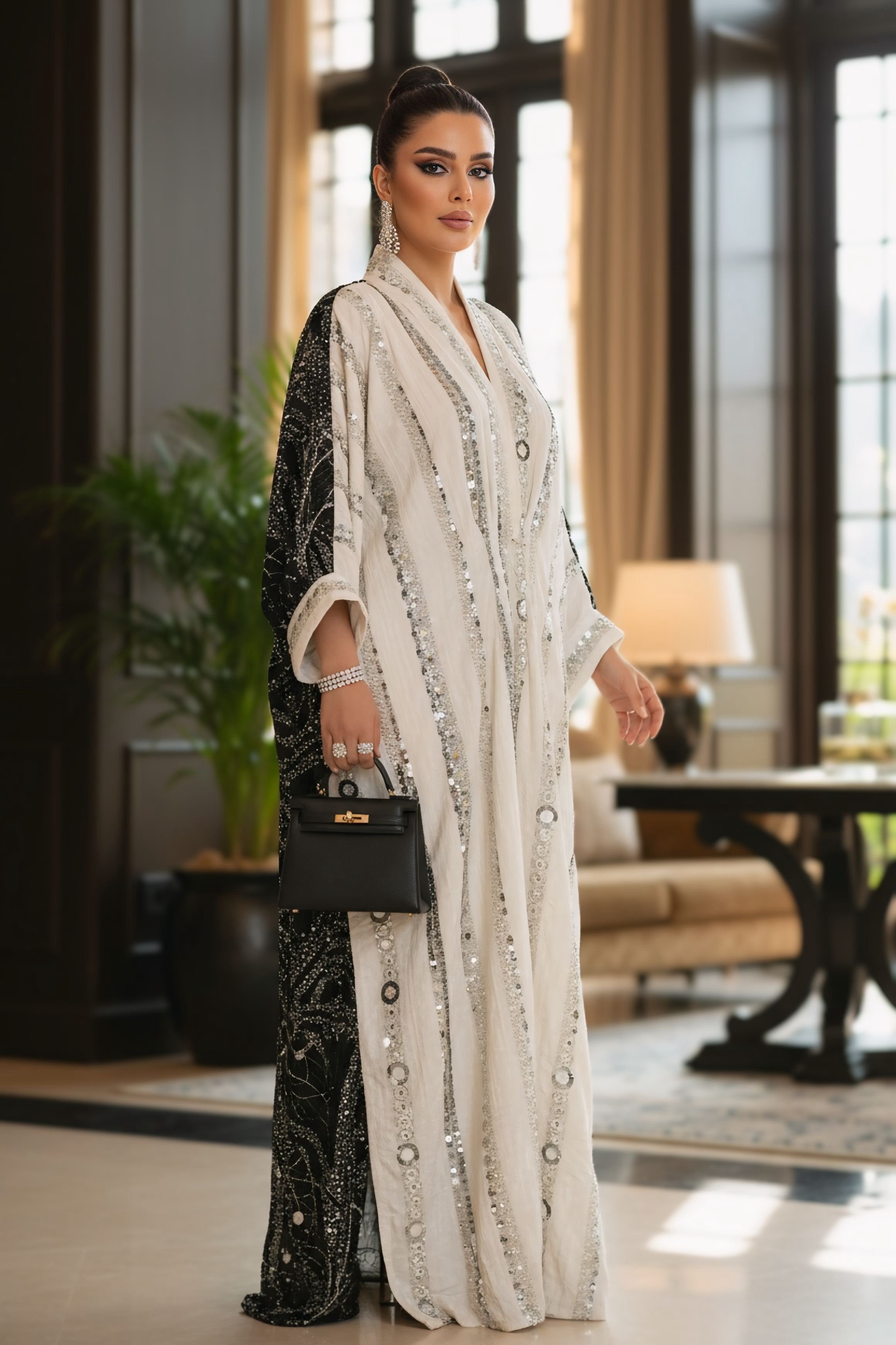 Model long dress length: 57 inches