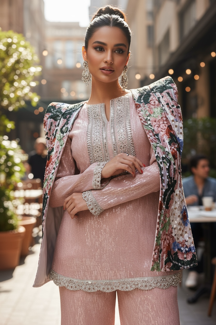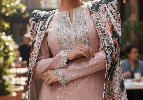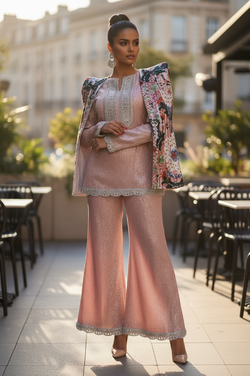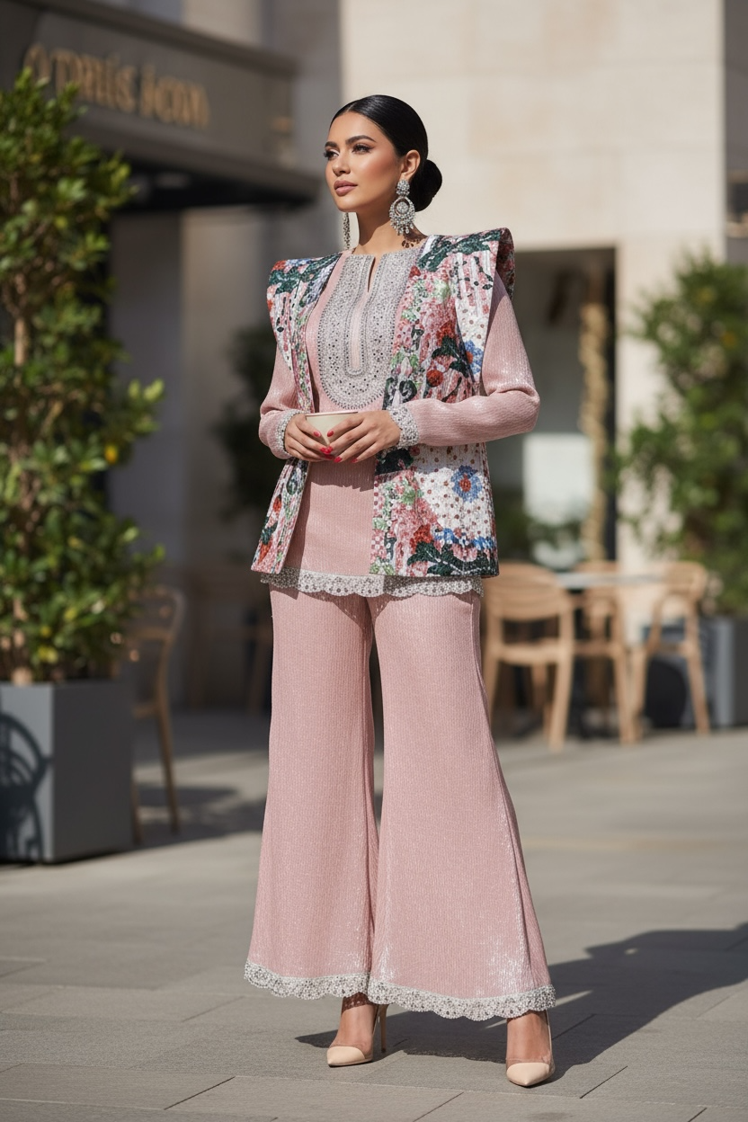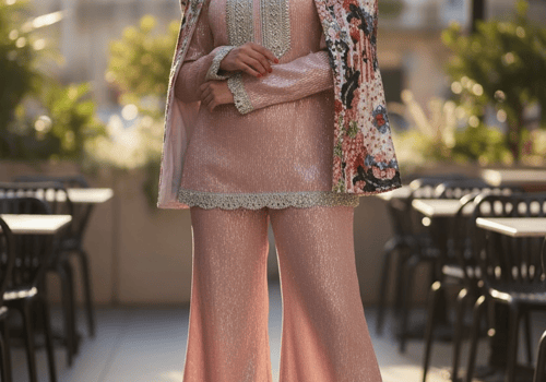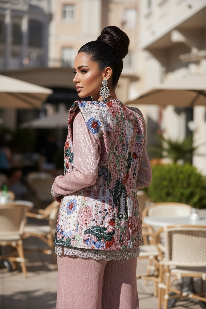 3 pieces beaded linen set