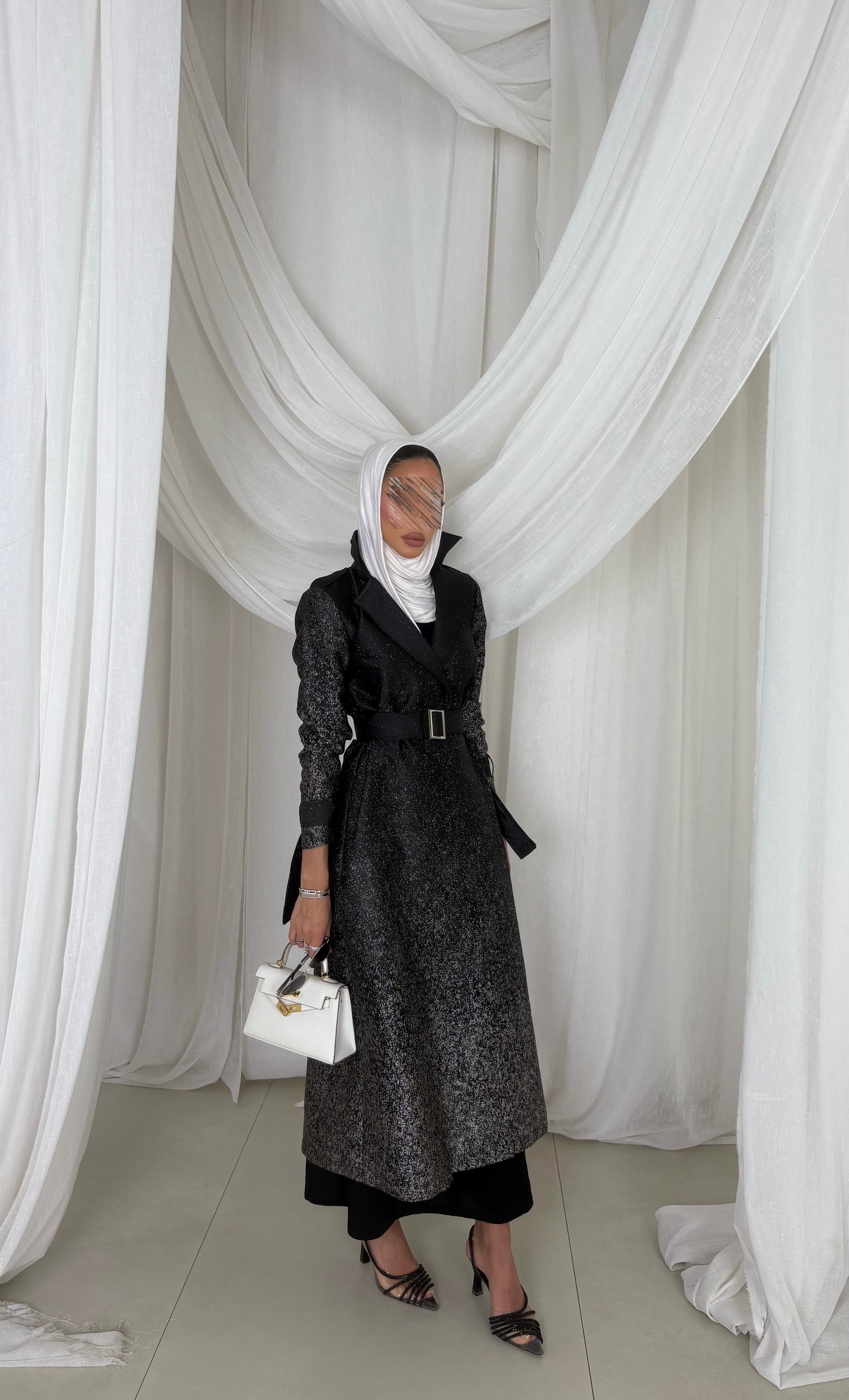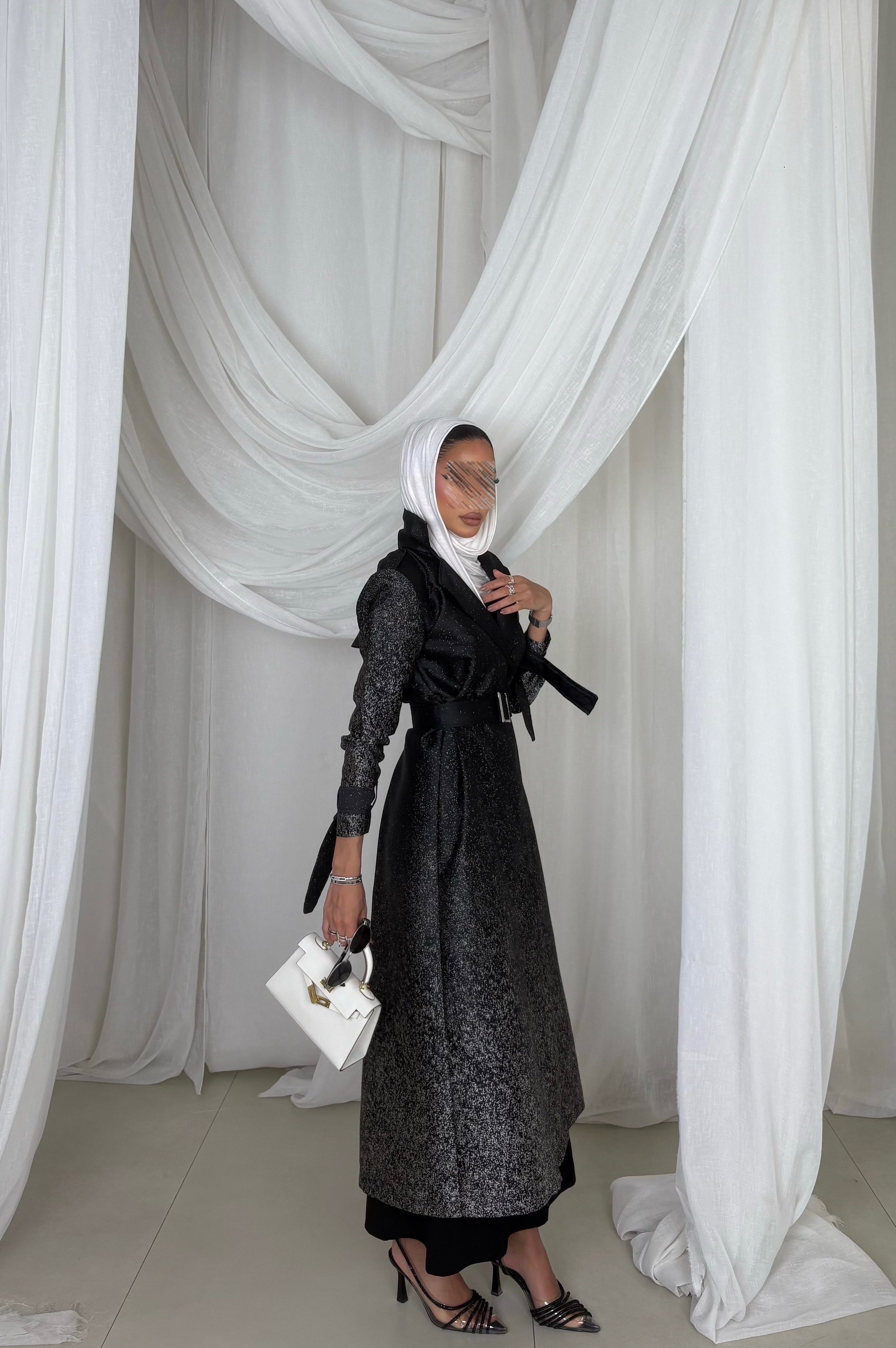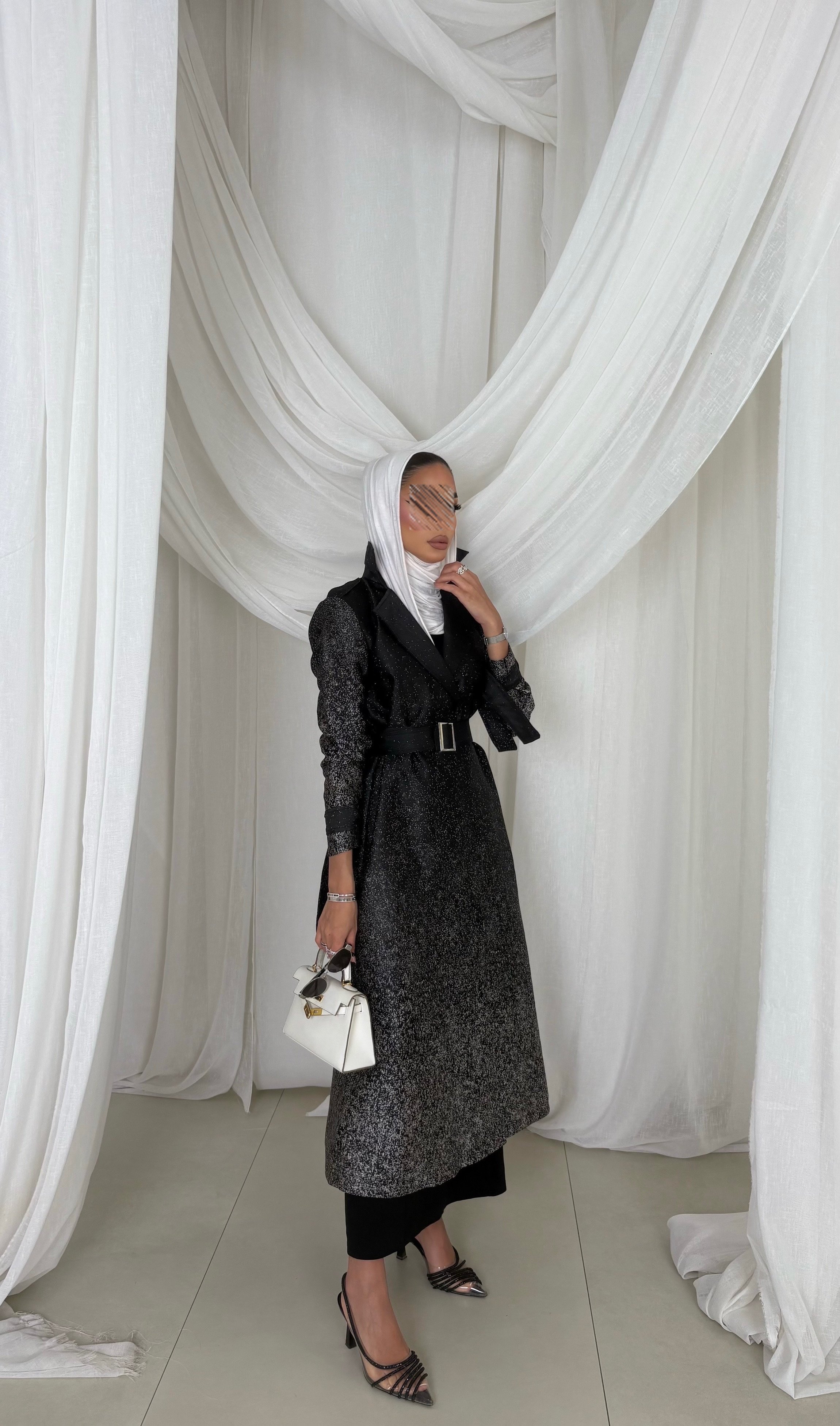 Soft cotton Jacquard fabric trench coat ( Black)