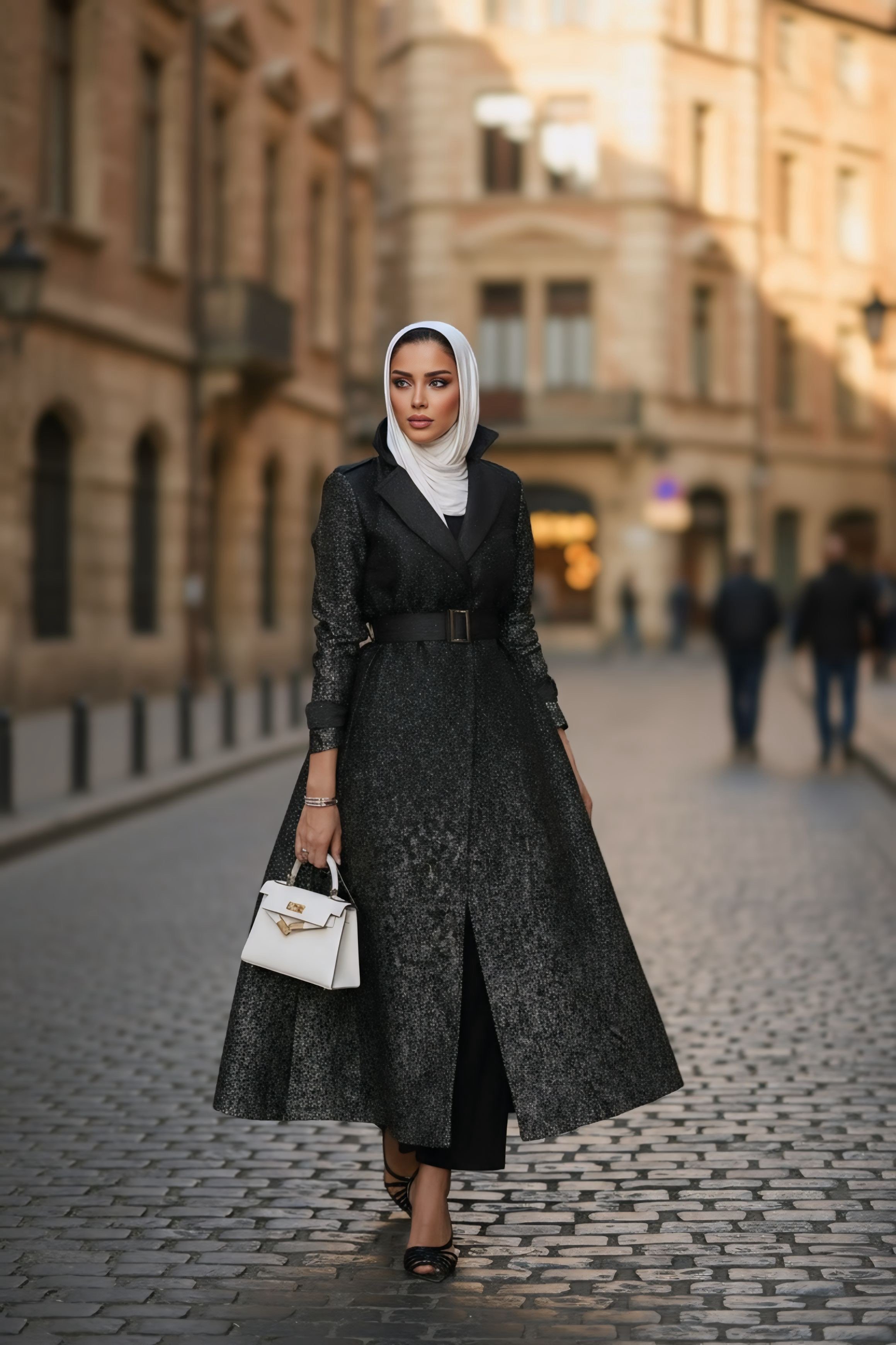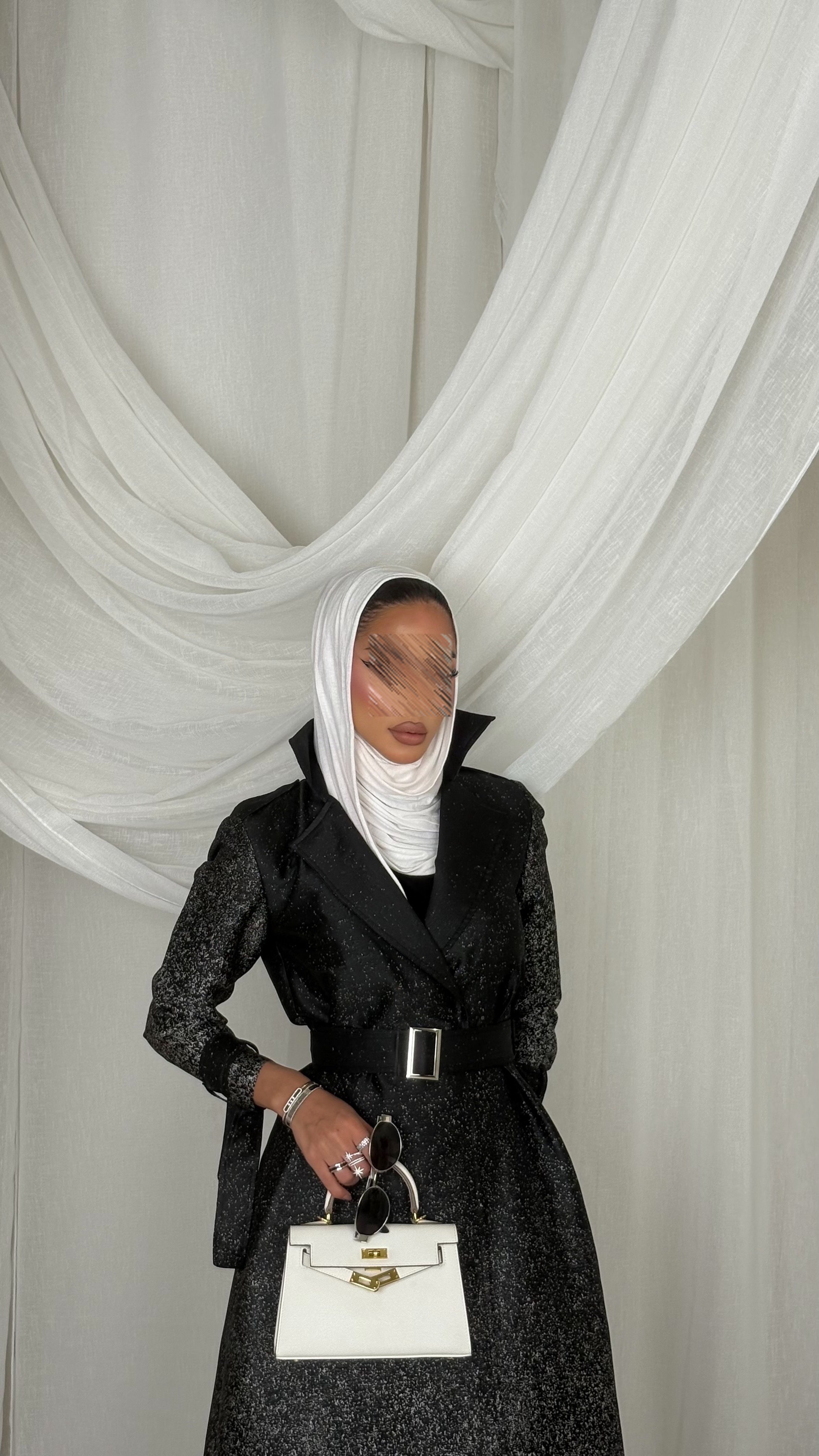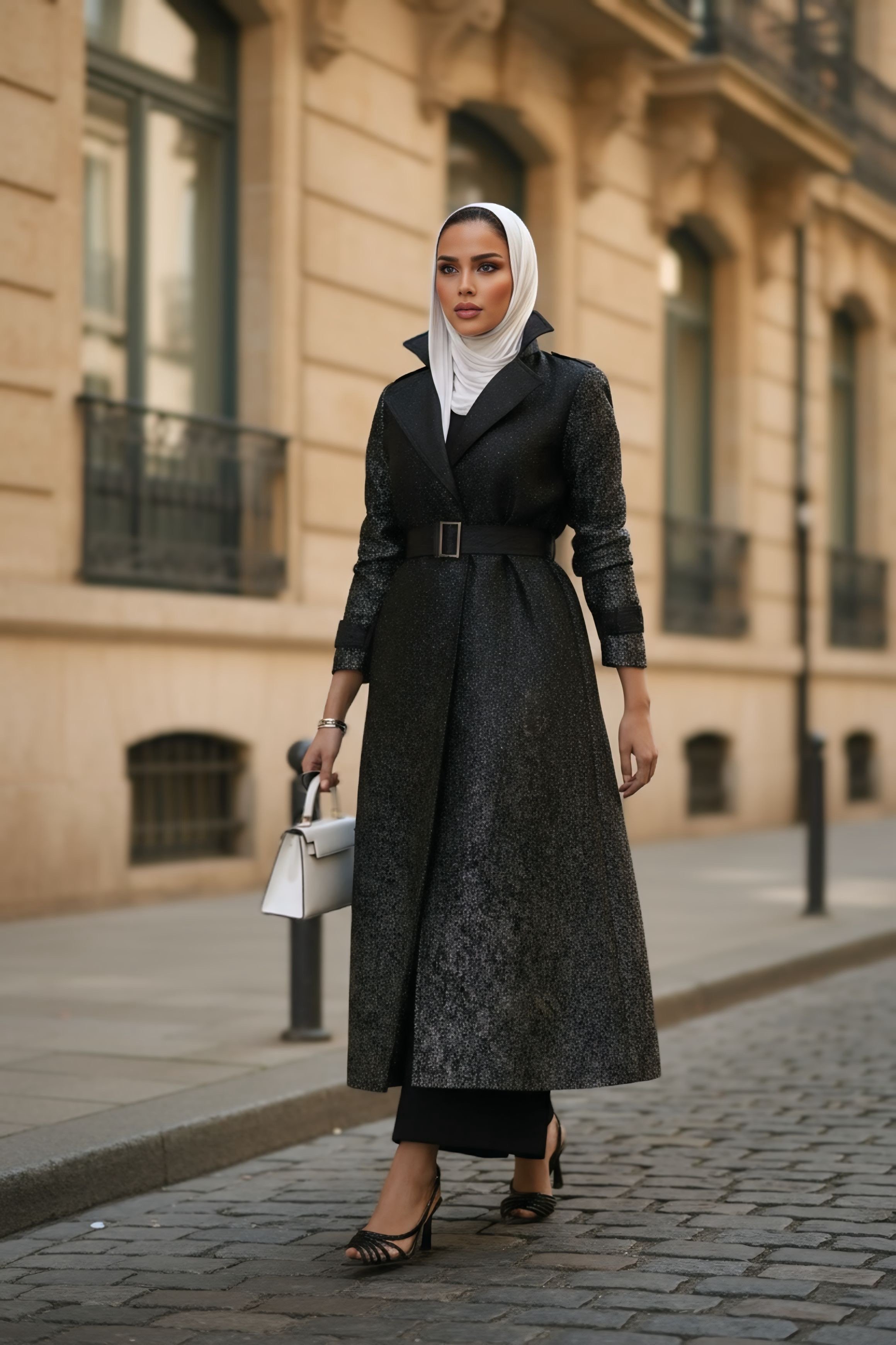 Soft cotton Jacquard fabric trench coat ( Black)